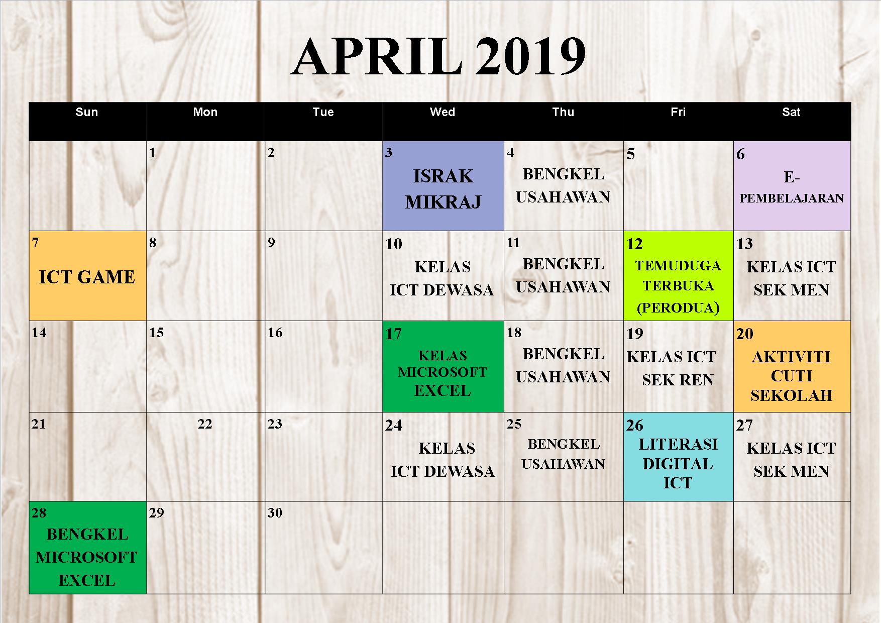 Jadual Aktiviti Bulan April 2019 Pusat Internet Karangan